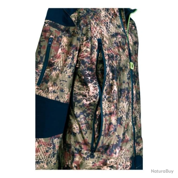 Capuche tempête réglable et détachable. Système d’aération zippé sous les bras. Double poche zippée étanchée avec double curseur. Cartouchière intégrée pour cartouche dans une poche basse et pour balle dans l’autre.