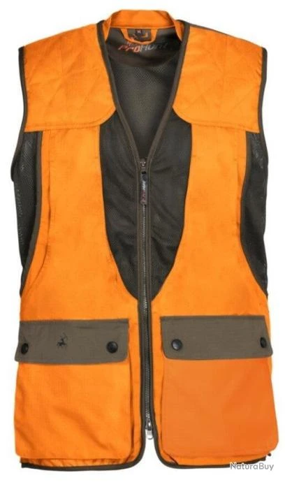 Découvrez le gilet de chasse sans manches bicolore kaki et orange Grouse de la gamme Pro Hunt, un gilet résistant et confortable adapté au temps doux et sec comme en début de saison.
