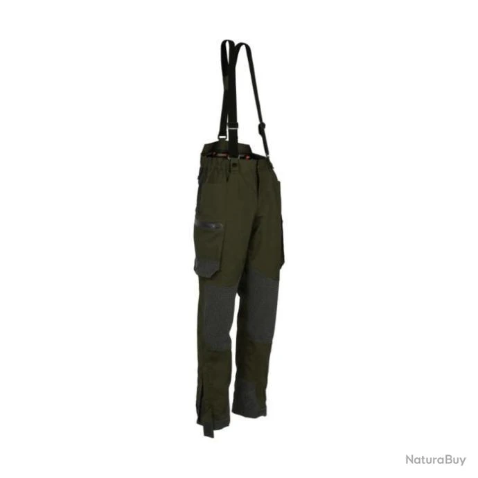 Tissus laminés avec une membrane microporeuse imperméable et respirante, coutures étanches. Renforts aux genoux et bas de jambe en tissu haute résistance. Ceinture demi-élastiquée antiglisse montante dans le dos. 2 poches italiennes, 2 grandes poches cargo, 1 poche couteau et une poche arriÚre. Genoux préformés pour une meilleure ergonomie.