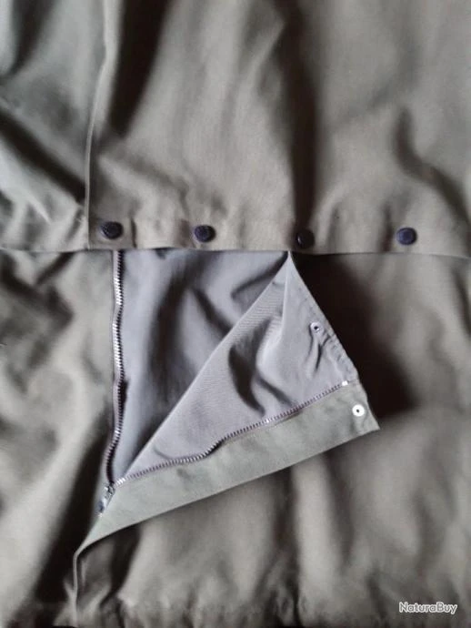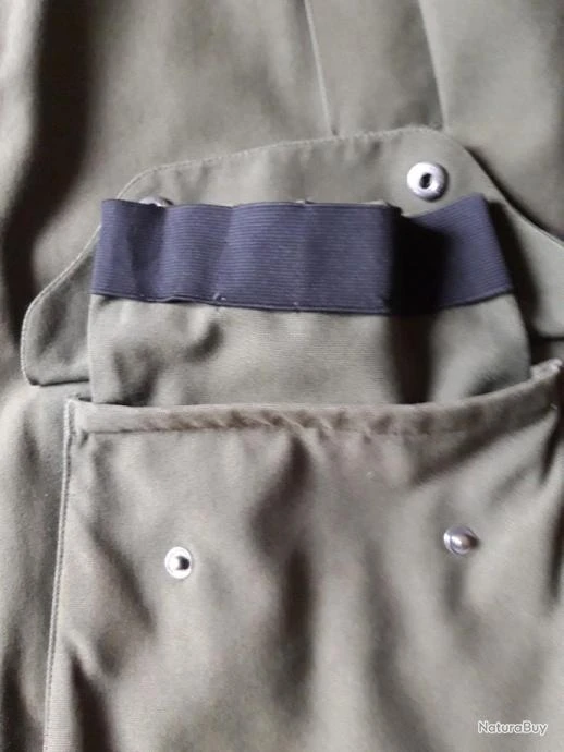 au dos poche carnier, ouverture sur 3 côtés, boutons pression en haut et fermeture zippée sur les côtés