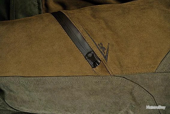 – Grandes poches basses avec 2 rangées de cartouchières intégrées et pattes de maintien d’ouverture